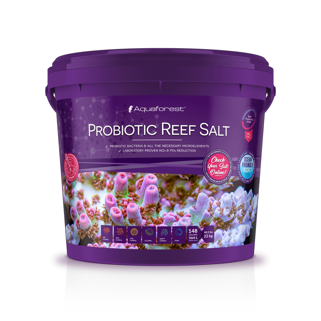 Preparation: Dissolve the salt in the previously prepared demineralised water. Water temperature should be about 24°C (75°F). For salinity of 33 ppt dissolve about 390 g (13.75 oz)/10 l (2.7 US gal) of water. Stir the solution vigorously for about 15 minutes. Once the salt is fully dissolved and the solution is clear, the saline water is ready to use. Keep the salt in a dry and dark place. Once dissolved, use the salt within 24 hours. When using Probiotic Reef Salt, it’s not recommended to perform water changes larger than 10-15%. Keep out of reach of children. Product for aquarium use only. Not suitable for human consumption. Safety data sheet available on request.